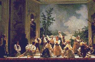 The musical is often structured with alternate scenes, played downstage of one of several different backdrops. This allows a full scene to be 'preset' upstage. When the drop rises, we are magically transported to a new stage setting.