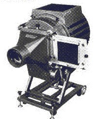 One of the simplest and first projectors used for scenic projection was the Linnebach projector developed in Germany by Adof Linnebach. Developed in the early 1900's, this very simple projector consisted only of an enclosed box with a large transparent slide placed on one side. A point light source inside the box caused an the image of the slide to be projected and enlarged onto an adjacent background. The image had a slightly soft definition (due to no lens) and was particularly well suited to a stylized theatrical productions. Many early designers produced elaborate hand painted slides for a wide variety of productions. The Linnebach projector is seldom used today as it requires a rather large transparency and is almost impossible to find manufacturers that produce the unit. They are however very easy to make.